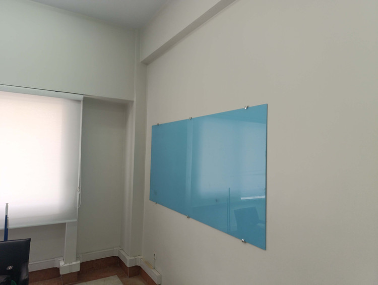 وایت برد شیشه ای سایز 200*100 تمام مغناطیسی رنگ ابی.