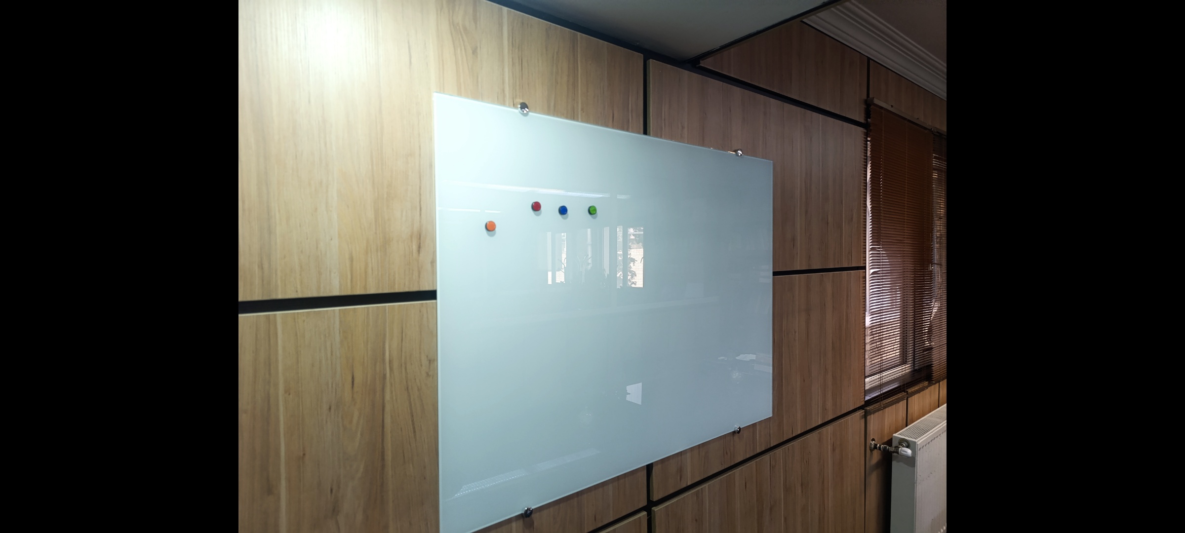 وایت برد شیشه سایز 80*120ساخته شده از شیشه سکوریت سوپر کلییر رنگ کوره ای 700درجه تمامی محصولات گلسبرد اریا دارای یک هفته گارانتی تعویض و پانزده سال خدمات پس از فروش قابلیت نصب بر روی دیوار کناف .کاذب گچی چوب وغیره ضمنا ارسال و نصب تمامی گلسبردها در سراسر تهران رایگان میباشد
